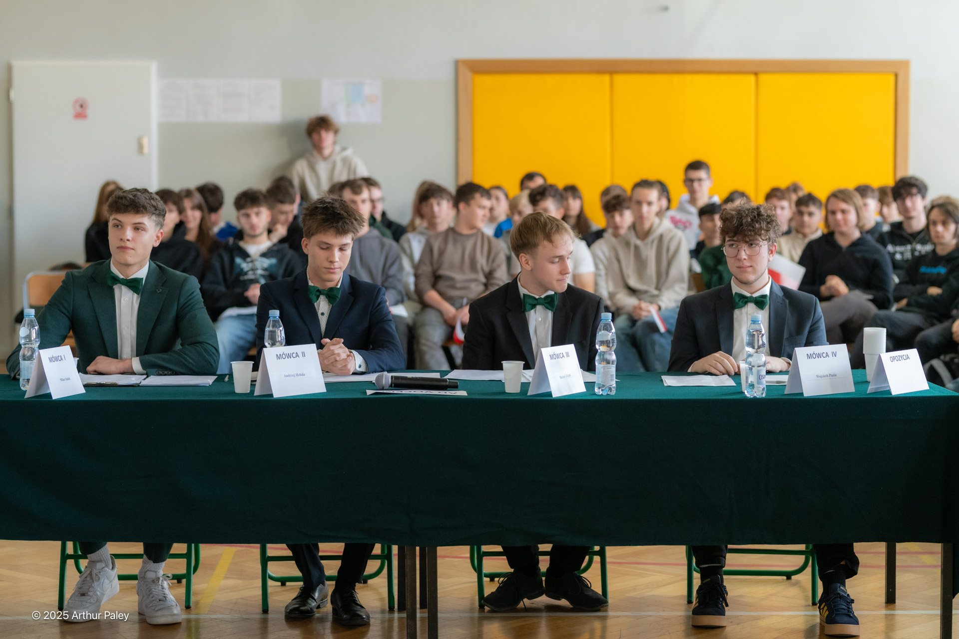 Debata przebiegała w niezwykle merytorycznej atmosferze — jej uczestnicy nie tylko prezentowali starannie przygotowane argumenty, ale też umiejętnie nawiązywali do wypowiedzi swoich oponentów. Dynamiczna wymiana poglądów, poparta faktami i logicznym wywodem, a czasem także górnolotnymi porównaniami sprawiła, że dyskusja angażowała od pierwszych minut, a każdy kolejny głos wnosił nową jakość i pobudzał do refleksji, co podkreślał również w podsumowaniu wicestarosta brzeski – Maciej Podobiński, pełniący funkcję Przewodniczącego jury.